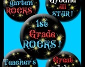 SALE School Rocks ! Print these 1 Inch Circles for your students or as a teachers gift.Make them into magnets, pins, stickers ! Vibrant and colorful, your students will LOVE them !