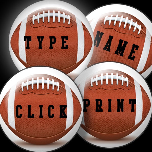 For Commercial or Personal Use ~ My Shop is Buy 3 Get 1 FREE ~SALE Digital Collage Sheets. One Inch FOOTBALL Circles are vibrant and Editable with your own script. Use in pendants, bottle caps, pocket mirrors, wine charms, scrap-booking, magnets, hair clips, cake toppers....anything you can craft !Easy...