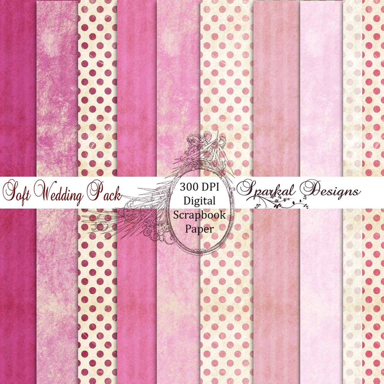 Vintage Grunge Dusty Rose Stripes and Polka Dots Paper Pack of 6 - 12 x 12 Jpeg Sheets