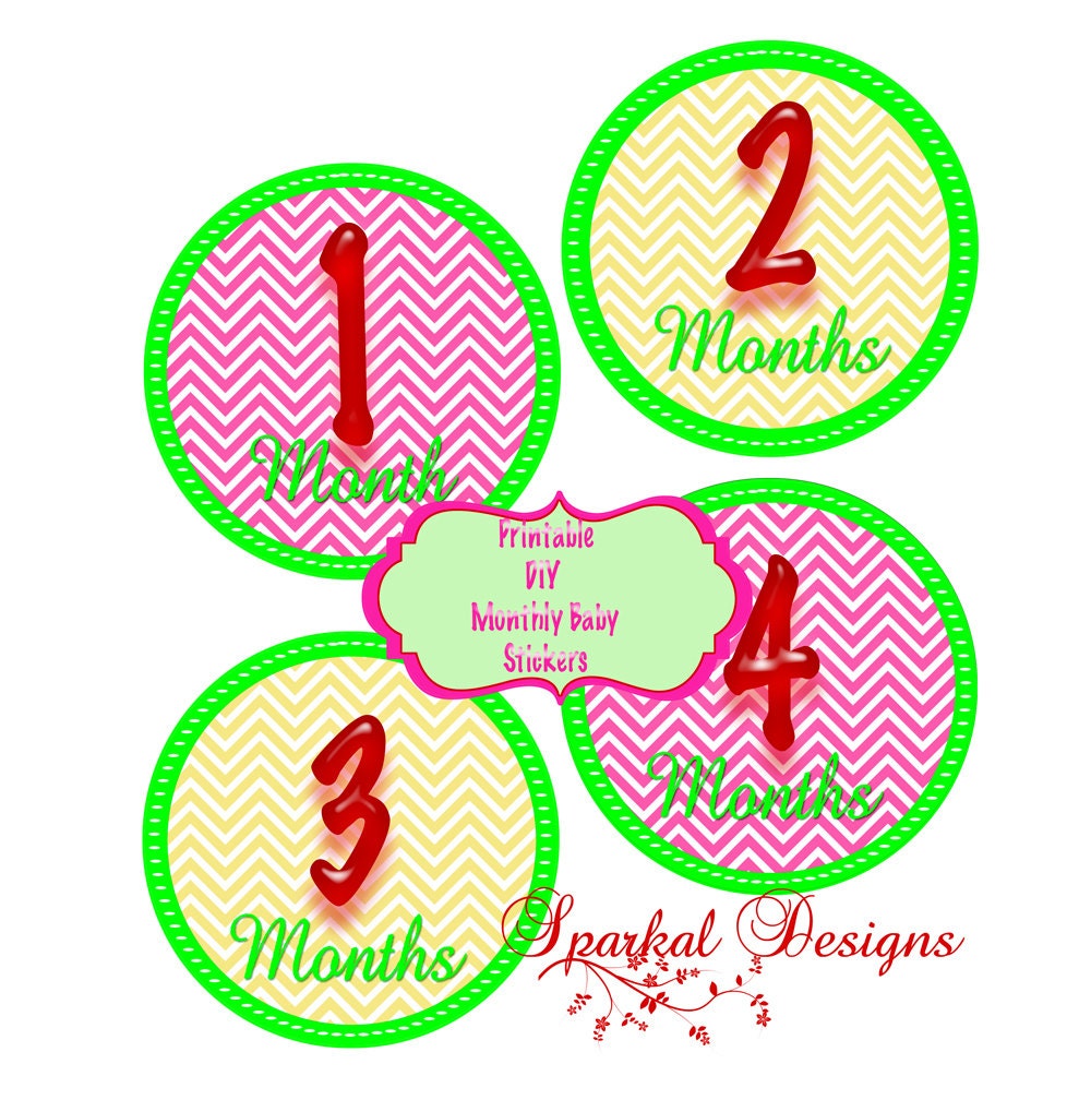 Baby MONTHLY STICKERS, Digital Chevron Round Monthly Baby Stickers, Printable on full sheet sticker paper, for a Great Baby Shower Gift