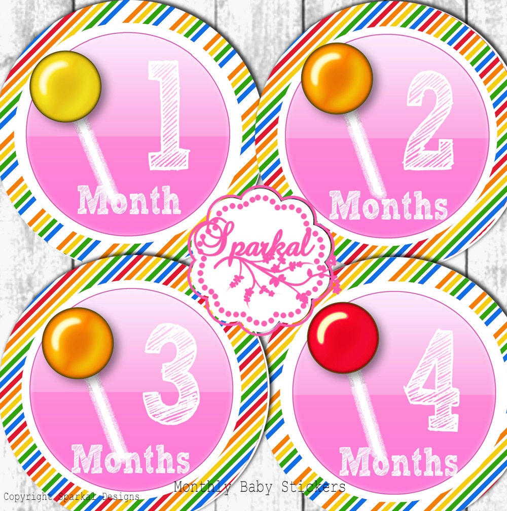 Baby MONTHLY STICKERS, Lolipop Digital Baby Milestone Stickers, DIY Printable on full sheet sticker paper, Great Baby Shower Gift