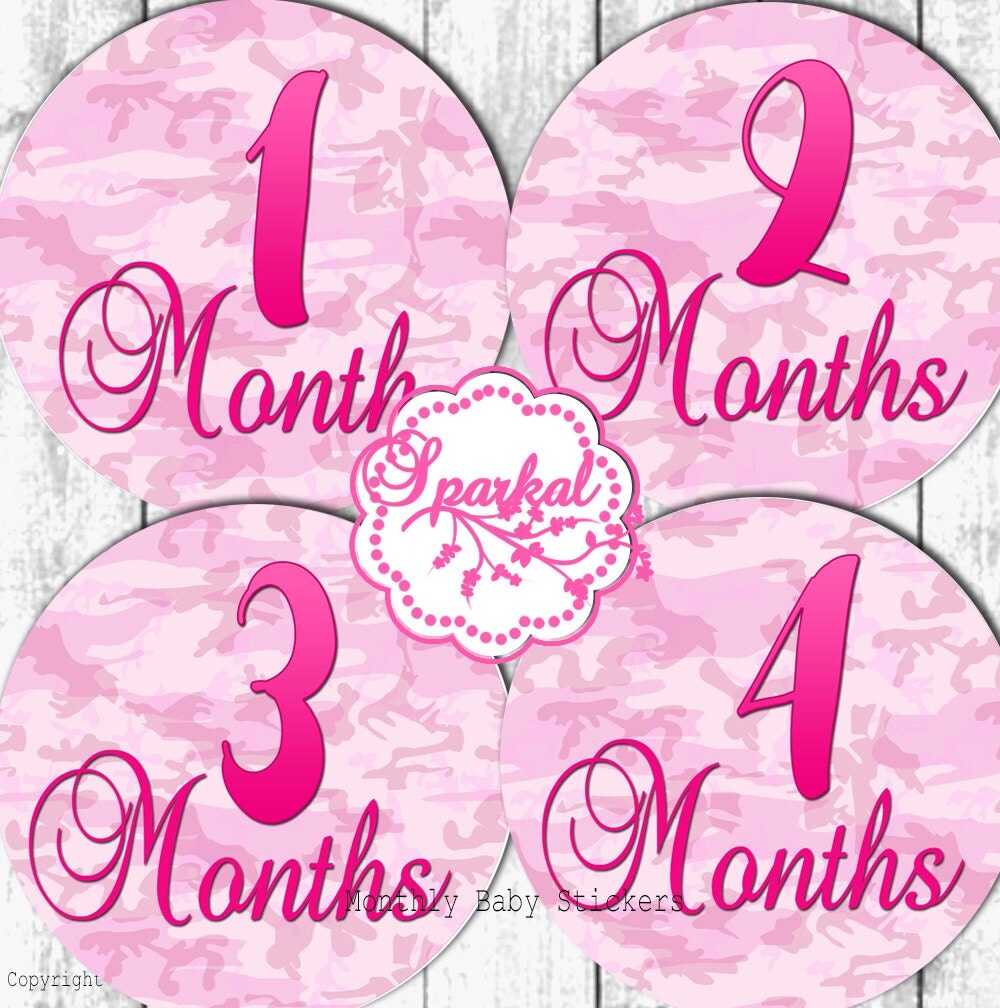 Baby MONTHLY STICKERS, Pink Camo Digital Baby Milestone Stickers, DIY Printable on full sheet sticker paper, Great Baby Shower Gift
