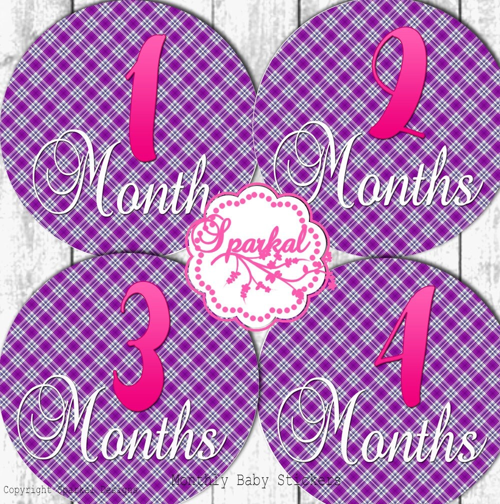 Baby MONTHLY STICKERS, Purple Plaid Digital Baby Milestone Stickers, DIY Printable on full sheet sticker paper, Great Baby Shower Gift