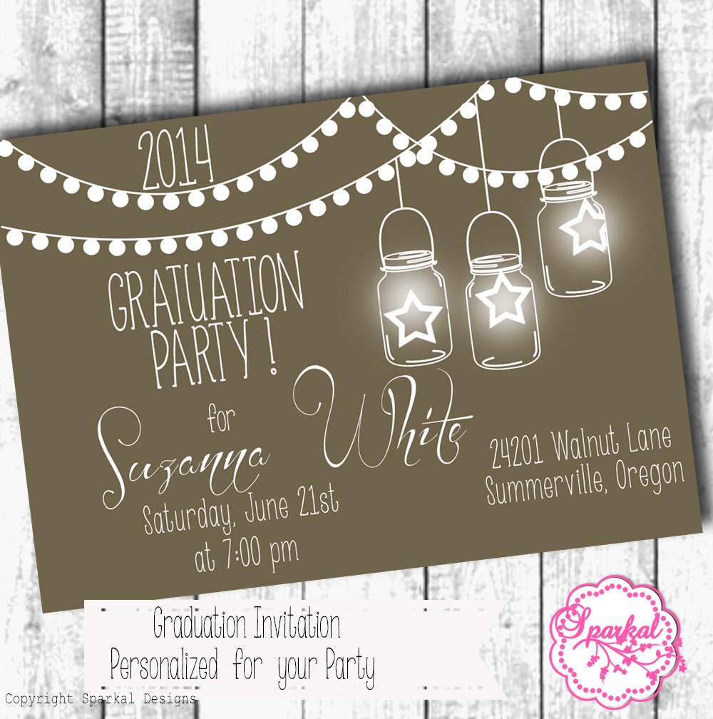 Graduation Party Invitation, Brown Mason Jar Chalkboard Style 5×7 Printable DIY Print at Home Party Invitation Printable Party Supply