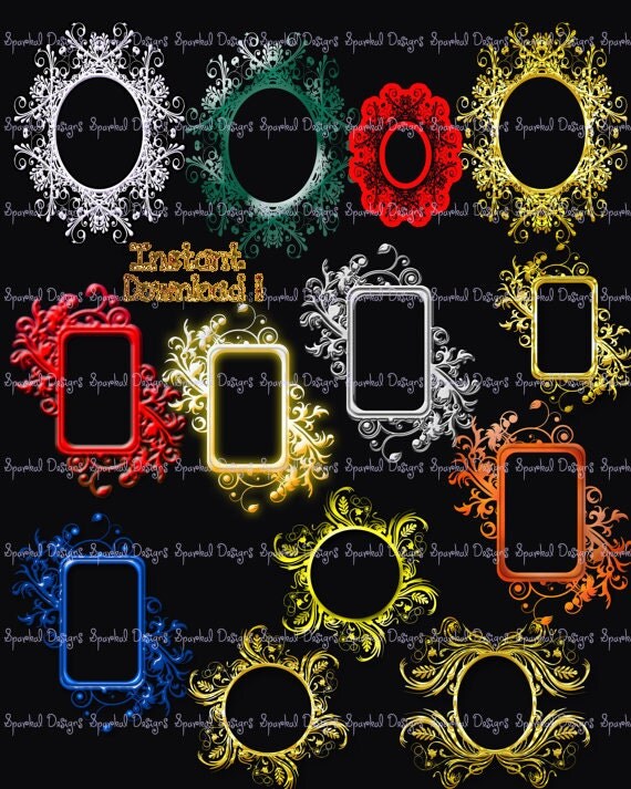 Digital Scrapbooking Frames Instant Download Photo Frames Frame clipart Photography Frames Swirly Frame Colorful Digital Frames 206 Party