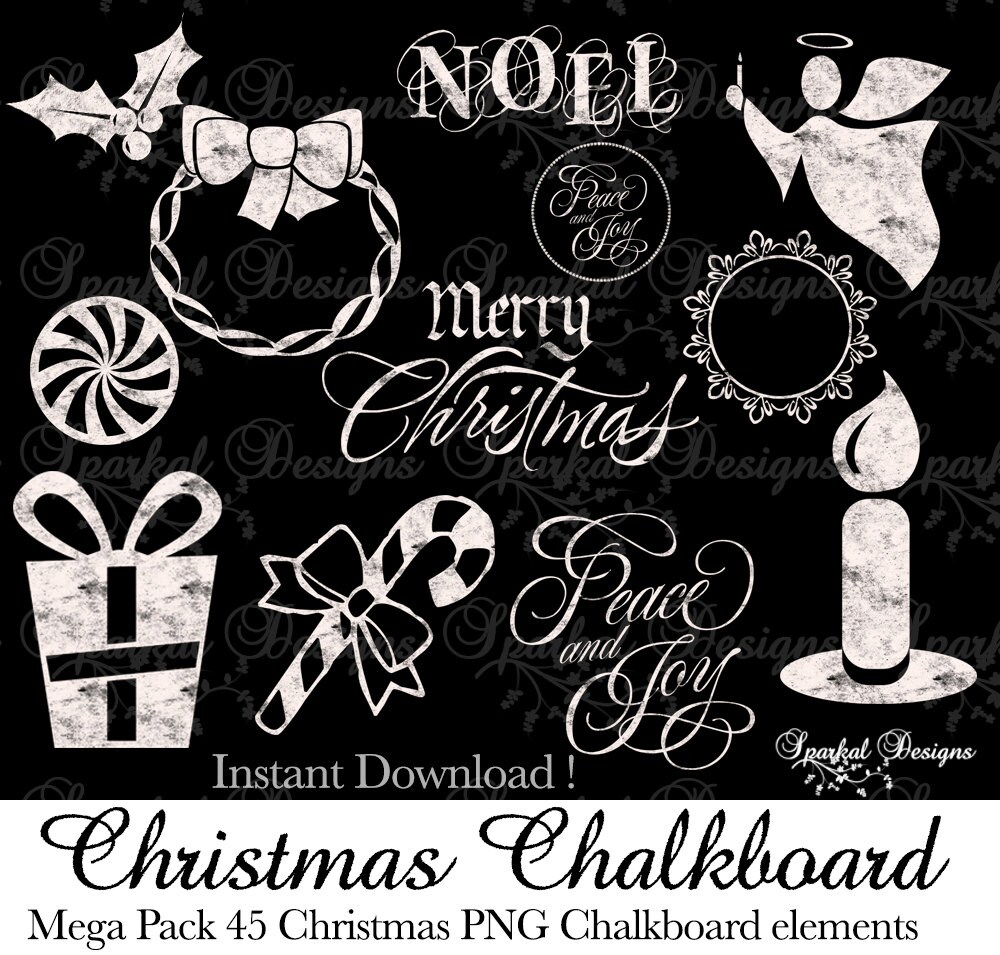 Christmas Chalkboard MEGA Pack Retro Clipart 45 Pack of Christmas Chalkboard Clip Art Rustic Chalkboard Flourishes Instant download