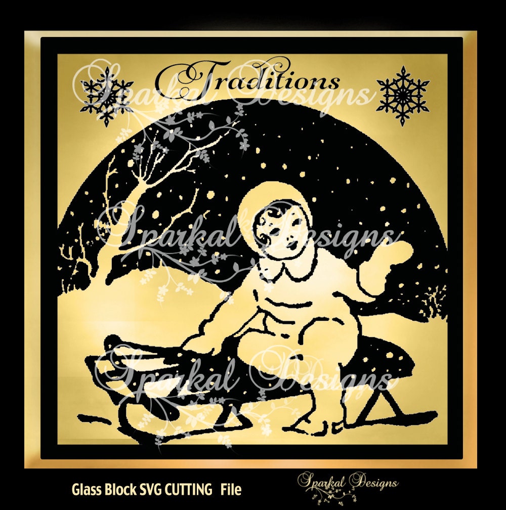 Christmas Sledding SVG Cutting File Christmas Glass Block SVG File Use Silhouette Designer Edition Sure Cuts A Lot (SCAL3) Vintage