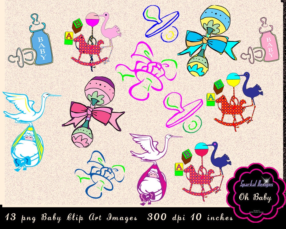 Nursery ClipArt Stork Clip Art Baby Rattle Rocking Horse clipart Baby Shower clipart shower Invitation Pacifier clipart instant download